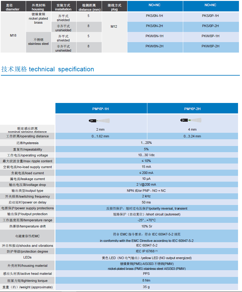 電感式傳感器,PMS/0N-1H,墨迪 Micro Detectors,接近傳感器