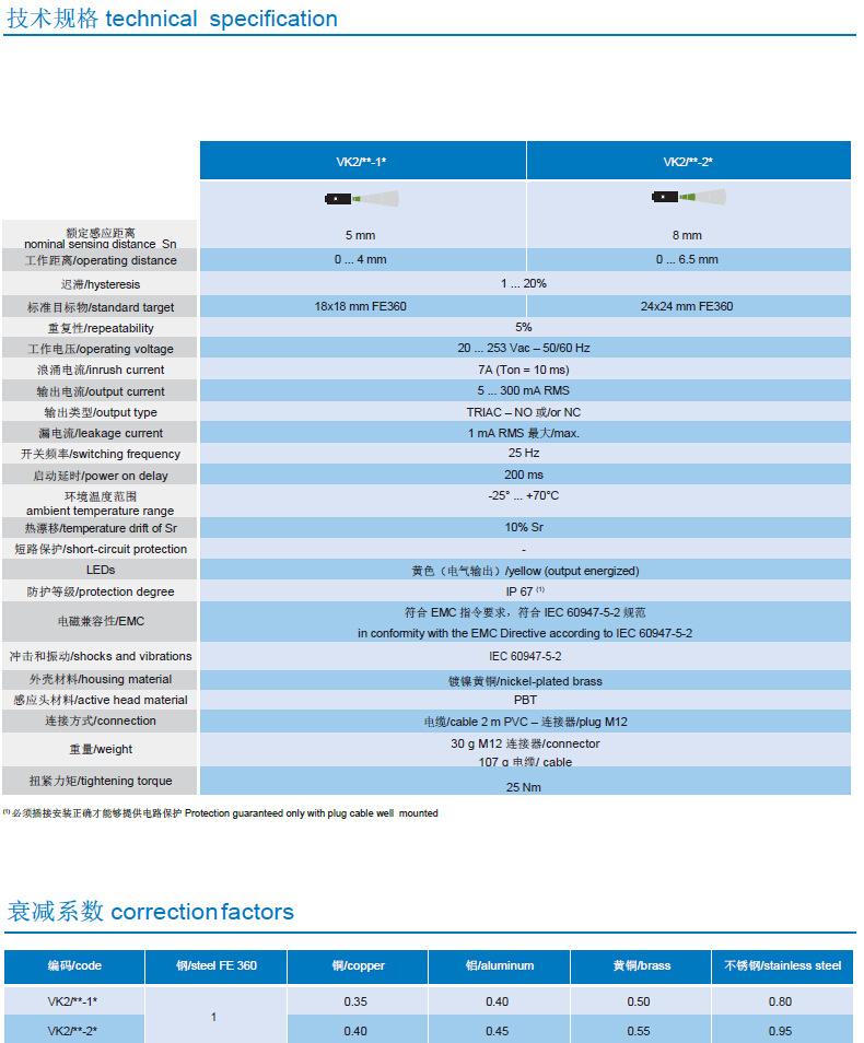 • 輸出方式:電纜和 M12 接插件 Output: cable and M12 plug cable exit
