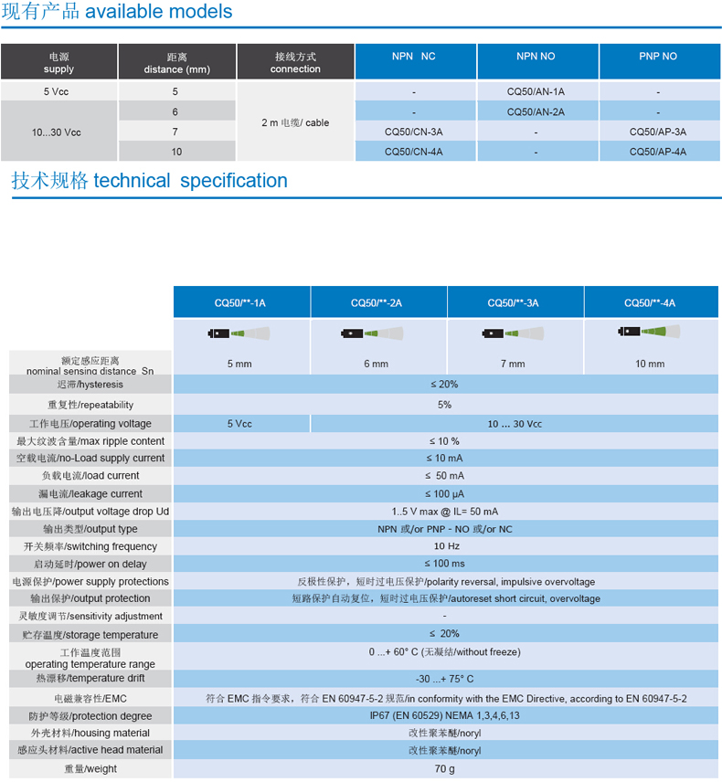 電容式傳感器,接近傳感器,CQ50/AN-1A,墨迪 Micro Detectors