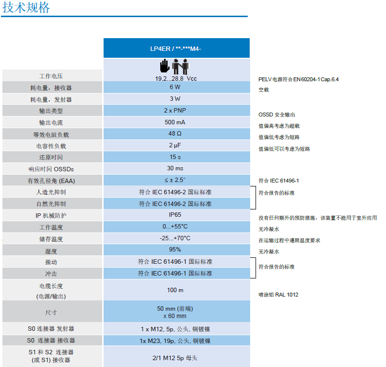 • 4 類光幕產(chǎn)品符合 IEC 61496-1 和 IEC 61496-2 國(guó)際標(biāo)準(zhǔn)