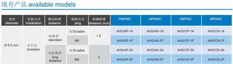 直徑為6.5 mm 圓柱形微型電感式傳感器