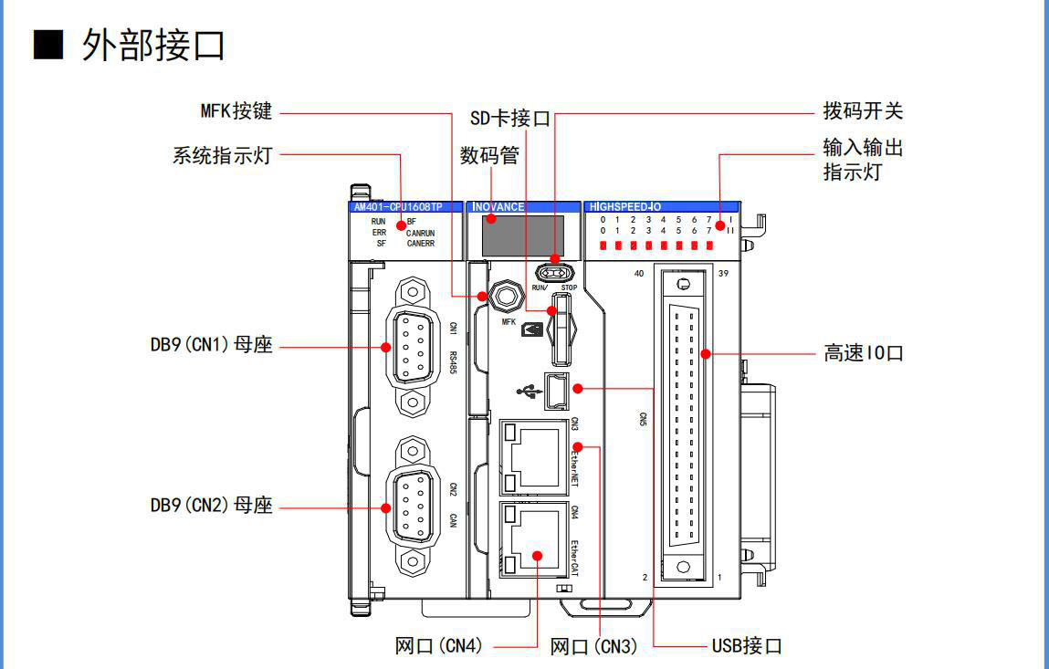 (2)帶串口、帶CAN接口、支持CANopen以及EtherCAT多種方式同時擴(kuò)展,可通過總線擴(kuò)展分布式IO,實(shí)現(xiàn)一站式服務(wù)