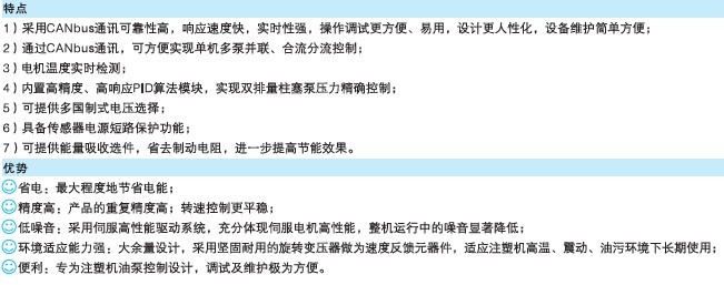 1.參與CANbus通訊可靠性,相應(yīng)速度快,實(shí)時(shí)性強(qiáng),操作調(diào)試更方便、易用,設(shè)計(jì)更人性化,設(shè)備維護(hù)簡(jiǎn)單方便; 2.通過(guò)CANbus通訊,可方便實(shí)現(xiàn)單機(jī)多泵并聯(lián)控制; 3.電機(jī)溫度實(shí)時(shí)監(jiān)測(cè); 4.內(nèi)置高精度、高響應(yīng)PID算法模塊,實(shí)現(xiàn)雙排量柱塞泵壓力精確控制; 5.可提供多國(guó)制式電壓選擇; 6.具備傳感器電源短路保護(hù)功能;