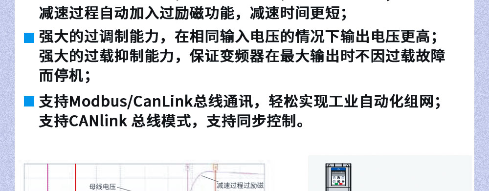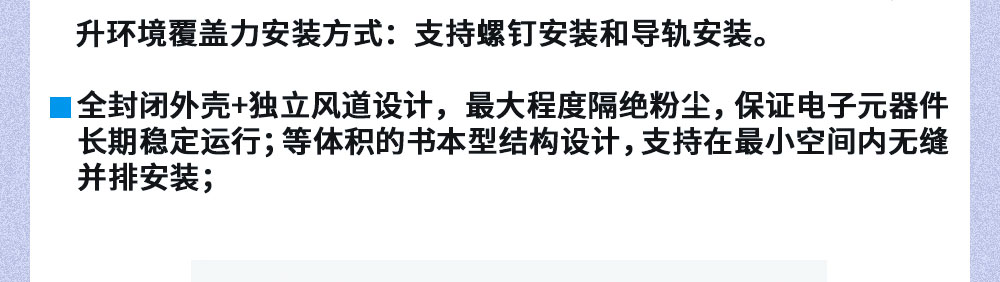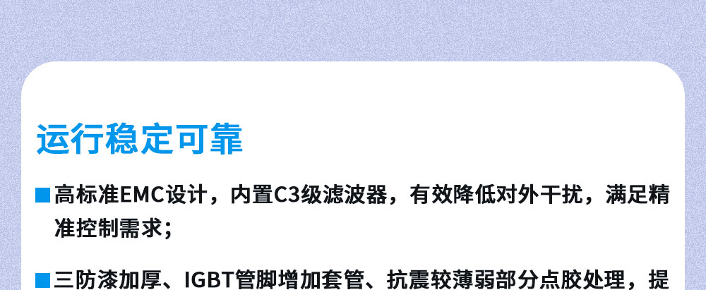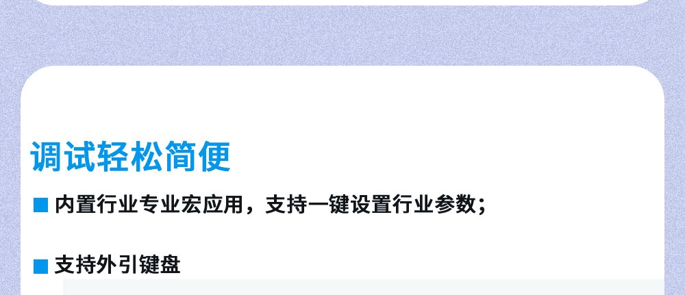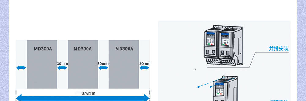 MD200具有高功率密度、高EMC規(guī)格設(shè)計、高防護(hù)性能等顯著優(yōu)勢,采用書型結(jié)構(gòu)設(shè)計,支持無縫并排和導(dǎo)軌安裝,體積小巧,安裝簡便,節(jié)省空間。接線端子采用無蓋設(shè)計,配線、操作、維護(hù)更加方便。全系列機(jī)型內(nèi)置輸入濾波器,充分提高抗干擾能力和降低對外干擾。采用宏參數(shù),將典型應(yīng)用一鍵實(shí)現(xiàn)。