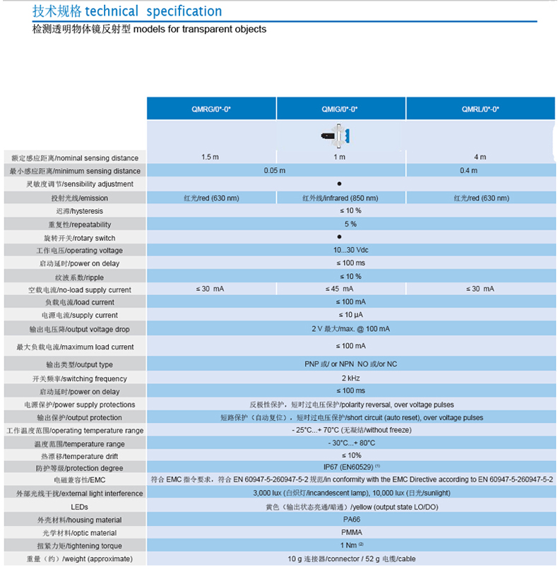 金屬網(wǎng)檢測傳感器,紡織布檢測傳感器,QMRG檢測透明,反光瓶子,顏料罐檢測