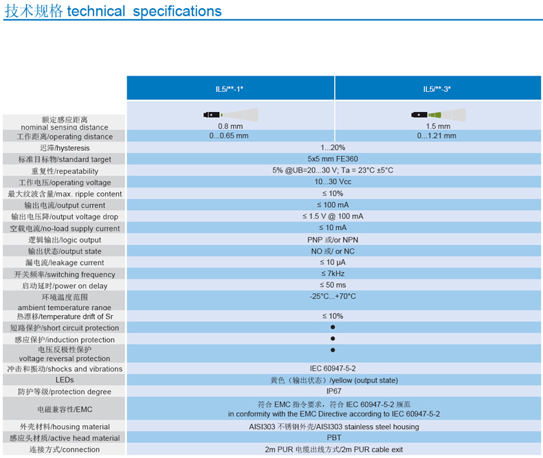 • 方形電感式傳感器 IL5 全系列產(chǎn)品:5x5x25 mm