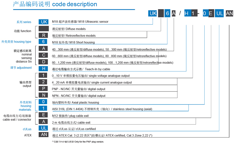 M18 cylindrical short body direct diffuse & retro-reflective Ultrasonic Sensor UK6 with Teach-In button