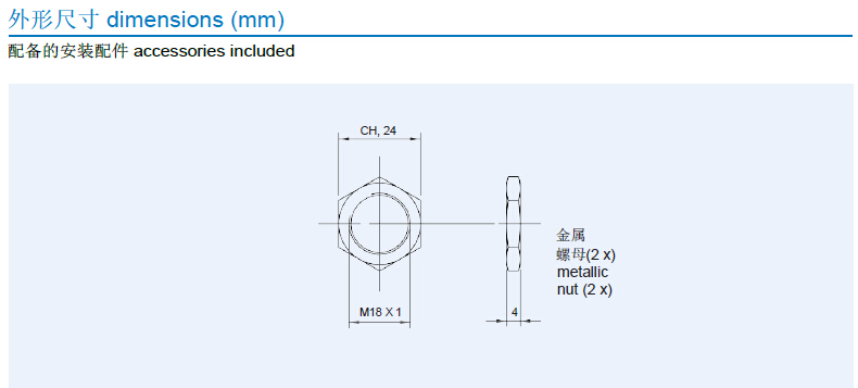 • Dimensions: M18 cylindrical short housing外形:M18圓形短外殼