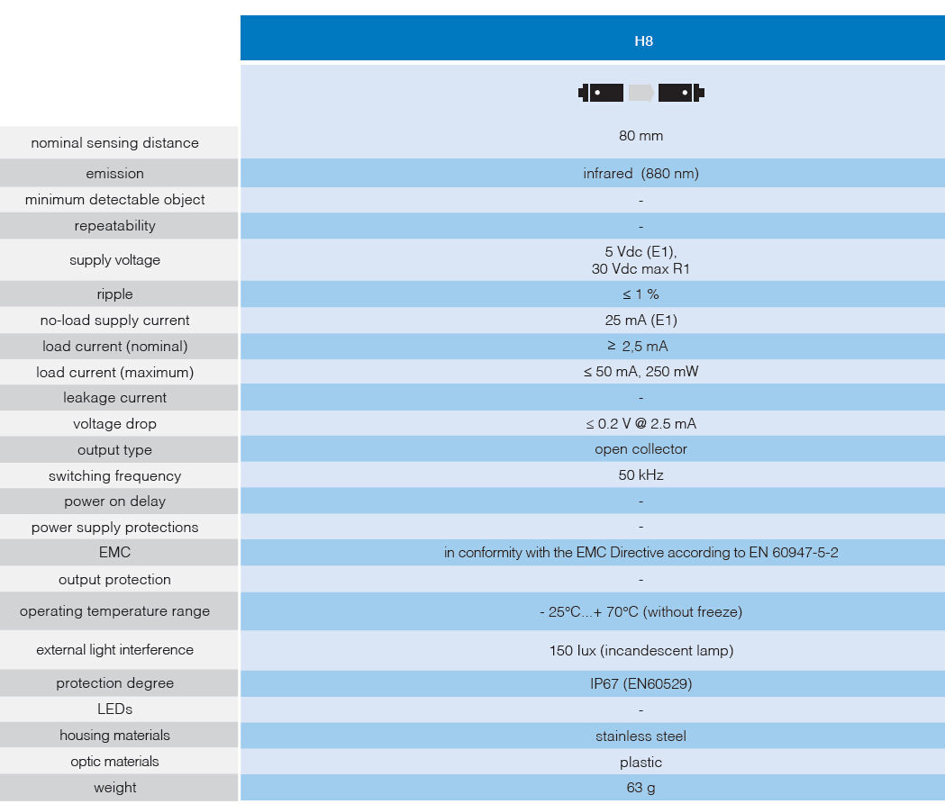 • 外形尺寸極小:M8 外殼 Very small dimensions: M8 housing