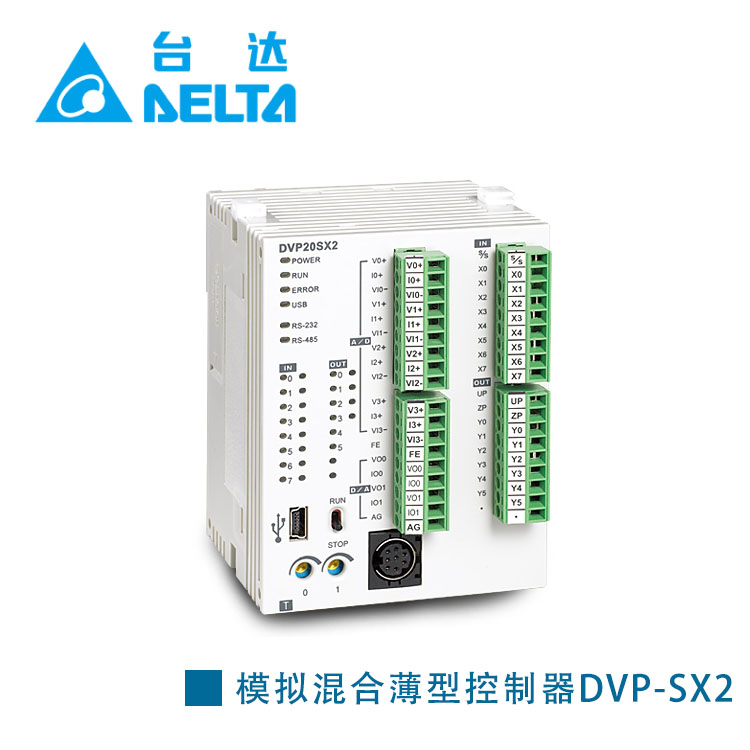 模擬輸入/輸出薄型主機 內(nèi)建4DI/2DO/2AI/2AO;DVP-20SX2內(nèi)建8DI/6DO/4AI/2AO 配合DVP第二代主機PID Auto Tuning指令,提供高效率PID控制功能