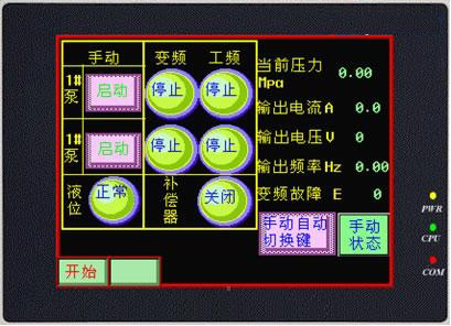 3、通過此種組網(wǎng)方式,用戶對于壓力設(shè)定、輸出頻率、輔泵頻率、PID數(shù)值、切換時間、 延時時間、超壓設(shè)定、壓力反饋等數(shù)十種參數(shù)可在觸摸屏上顯示、 設(shè)置、修改,方便操作。對水泵工作狀態(tài)、變頻器工作狀態(tài) 和系統(tǒng)水位等多個參數(shù),實現(xiàn)了即時跟蹤。滿足遠(yuǎn)距離監(jiān)測、監(jiān)控及控制功能。