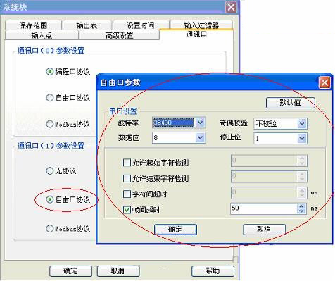 2.1 通過系統(tǒng)塊界面設(shè)置EC20的通訊端口1的自由口協(xié)議參數(shù),